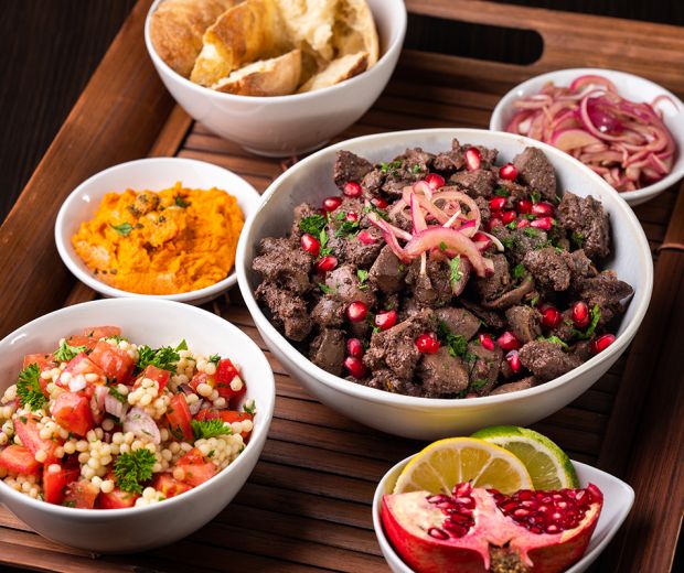 Ficatul de pui curățat și feliat îl punem într-un bol, adăugăm jumătatea uleiului de măsline, siropul de rodie, mierea, condimentele și amestecăm bine. Nu sărăm, deoarece ficatul poate să devină foarte tare. Lăsăm 15 minute, iar între timp, în restul uleiului de măsline, călim ceapa și usturoiul mărunțit, după care adăugăm ficatul și-l pregătim în 10-15 minute. Din cauza faptului că unele bucăți se pot rumeni prea tare, amestecăm de câteva ori în timpul pregătirii, iar la final putem adăuga sarea. Putem servi cu niște ceapă roșie murată (sare, piper, oțet), putem presăra cu pătrunjel, semințe de rodie sau putem consuma cu hummus, tabbouleh și pâine libaneză.