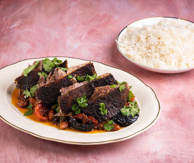 Spată de miel cu prune și piersici uscate