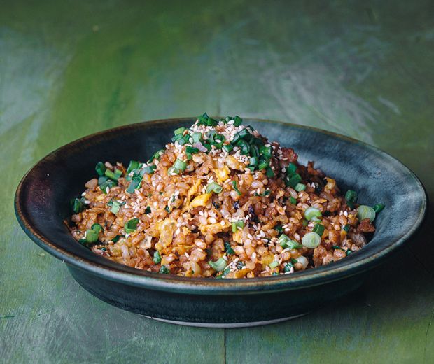 Să folosim un wok pentru pregătirea acestui fel de mâncare, dacă avem. În primul rând, încingem uleiul, adăugăm orezul fiert rămas și îl prăjim ușor. Adăugăm sosul de soia și ceapa verde măcinată, apoi amestecăm bine. În timp ce orezul se prăjește, batem ouăle, apoi le turnăm peste orez și amestecăm din nou. Sărăm ușor – cu grijă, deoarece sosul de soia este deja sărat. Când este gata, la servire presărăm cu puțin susan prăjit.
