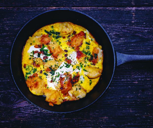 Cele mai bune părți ale mămăligii cu brânză sunt cele crocante, prăjite. Această rețetă transformă mămăliga obișnuită într-un fel crocant, rezultatul fiind pur și simplu divin! Încingem untura într-o oală de fontă. Cu ajutorul unei linguri luăm bucăți mici din mămăliga cu brânză și le prăjim în untură. Să nu le întoarcem foarte des, ci să le lăsăm să se rumenească frumos. Sunt excelente și așa – sunt chips-uri de mămăligă – dar le putem servi și ca o garnitură. Atunci când am prăjit bucățelele de mămăligă, batem ouăle, presărăm ușor și turnăm peste chips-urile de mămăligă. Pregătim sub capac, pe foc mic. Servim cu ceapă verde și pătrunjel verde mărunțit și fierbinte!