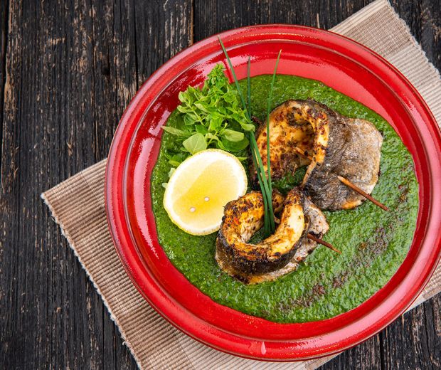 File de păstrăv în sos de spanac cu usturoi
