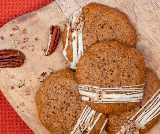 Amestecăm uleiul de cocos, xilitul și oul, după care adăugăm toate ingredientele uscate. Modelăm bile de 25-30 de grame din aluat, le punem într-o tavă tapetată cu hârtie de copt. Le întindem ușor și coacem la cuptor de 180 de grade timp de 8 minute.