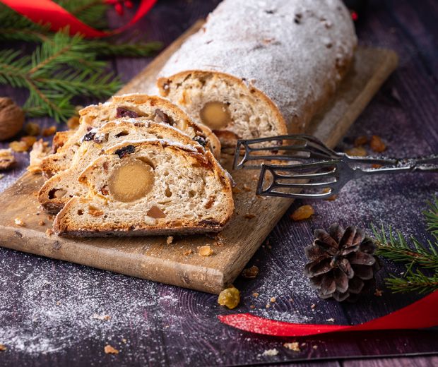 Cu o seară înainte stropim semințele tăiate și fructele uscate cu rom și le lăsăm la înmuiat minimum 12 ore. Pentru aluat, încălzim ușor laptele, adăugăm o lingură de zahăr și drojdia și lăsăm 8-10 minute ca să se activeze. Untul moale, zahărul și ouăle le batem cu un robot de bucătărie, adăugăm făina, după care urmează laptele cu drojdia și frământăm aproximativ 6-8 minute. La loc călduț lăsăm la dospit aproximativ 70-80 de minute, până ce se dublează. După dospire, strecurăm fructele și semințele înmuiate, ștergem excesul de rom cu un șervețel, după care încorporăm în aluat în două porții. Aluatul îl turnăm pe o suprafață înfăinată și îl tăiem în două părți egale. Întindem aluatul, trebuie să obținem un dreptunghi de 20 cm lungime, nu prea subțire. Din jumătatea marțipanului pregătim un cilindru de lungimea aluatului întins, punem peste aluat, pliem o parte peste el și ciupim marginile pentru a le lipi. Cu cealaltă bucată de aluat procedăm la fel. După ce am pregătit cozonacii, îi punem pe o tavă tapetată cu hârtie de copt și îi lăsăm la dospit la loc călduț încă 40-45 de minute. Coacem la cuptor preîncălzit la 170 de grade timp de 40-50 de minute. Cozonacii copți, fierbinți îi ungem cu unt topit și presărăm cu zahăr pudră. Îi feliem după ce s-au răcit.