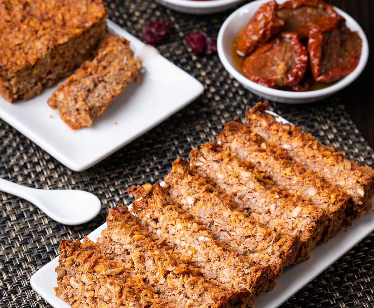 Punem lintea la înmuiat în apă cu o zi înainte, iar a doua zi o pregătim. Într-un tocător electric zdrobim lintea cu tofu, fulgi de ovăz, nucă, sos de soia, piure de roșii și condimente – rezultatul nu trebuie să aibă o consistență de piure pentru bebeluși, ci mai degrabă să aibă și bucăți mici, astfel încât creația noastră să corespundă, după feliere, așteptărilor vizuale și gustative. Călim ceapa și usturoiul în ulei, după care le adăugăm la aluatul nostru împreună cu oul. Turnăm aluatul într-o formă de cozonac și coacem la 180 de grade timp de aproximativ 30 de minute. Putem servi cu roșii uscate sau un sos din fructe – ca de exemplu merișoare – uscate. Putem servi cu legume călite, dar se potrivește și cu feluri de carne afumată.