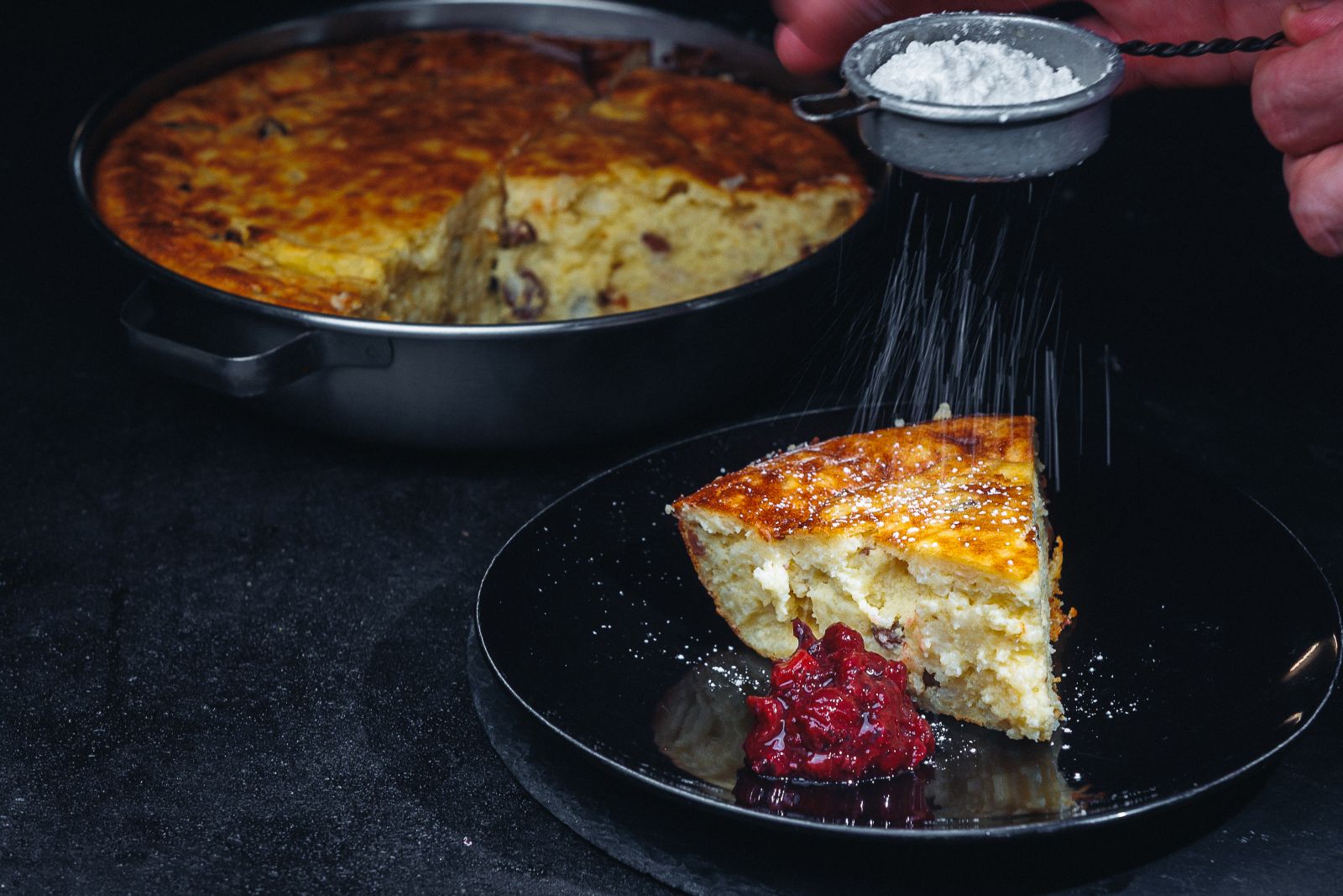 Dacă ne-a rămas o porție de orez cu lapte, să nu o aruncăm în niciun caz, putem pregăti din ea un desert copt, ușor și delicios! Aceasta este o rețetă simplă, rapidă, pe care o putem servi cu orice fel de dulceață mai acră! În primul rând preîncălzim cuptorul la 180 de grade (la funcția cu încălzire inferioară și superioară). Orezul cu lapte o punem într-un bol. Separăm ouăle. Gălbenușurile, zahărul vanilat și coaja rasă de lămâie le amestecăm cu orezul cu lapte. Albușurile le batem până obținem o spumă mai tare. Încorporăm, treptat, cu ajutorul unei spatule de silicon albușurile bătute cu amestecul de orez cu lapte. Ungem cu unt și făină o tavă termorezistenă, turnăm în aceasta aluatul. Coacem la cuptor în 25-30 de minute. Lăsăm să se răcească puțin, feliem și servim călduț cu o dulceață. Putem presăra și cu zahăr pudră.